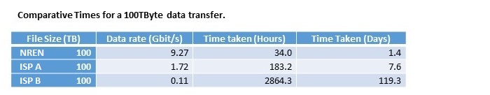 The results of these tests show that, for the high performance needs of research and education then the advantages of dedicated R&E networking are clear. Commercial networks operate to maximise the profit potentials and their backbones are scaled to meet the needs of the “average” or “typical” user, where adding capacity in smaller increments (eg: multiple 10 Gbit links aggregated together) makes financial sense and comes with no disadvantages for the typical user.