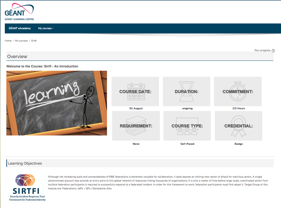 Sirtfi is the first training material to be available via the eAcademy, with more content to be added soon from across a range of projects and activities.
