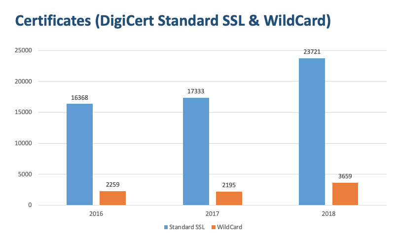 One of the statistics requested by the members prior to the Infoshare sessions were the numbers of the Standard SSL and WildCard certificates, as those are the ones offered by Let’s Encrypt for free. The numbers of the said certificates downloaded via the TCS show that there is no visible impact on the popularity of this part of the service since 2016.