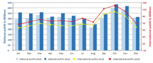 eduroam is certainly one of the most popular services and its uptake keeps growing; in 2019 our F-Ticks (monitoring system) recorded an additional 18% year-on-year increase. eduroam also reached another milestone: more than 1 billion international authentication were recorded in 2019. This follows the one billion national authentication recorded in 2016.