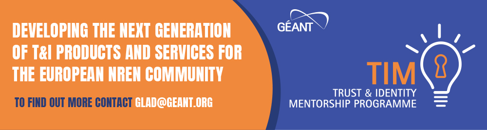 TIM is a GÉANT programme which brings together ambitious young talents, T&I experts and NREN mentors to pioneer new ideas in the Trust & Identity incubator. TIM takes place in the form of paid internship, as well as supported mentorship, funded by the GÉANT project GN4.3-WP5-T2.