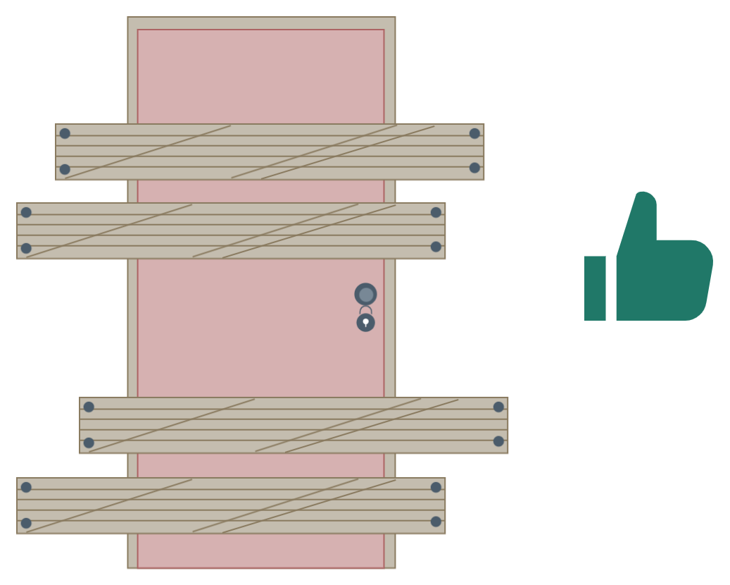 It can be surprisingly easy for them to find out basic personal information about you which they can use to guess your passwords, too. So, be careful how much information you give away on social media, such as your date of birth, pet name or favourite football team. If you use this information as your password, it’s like using sticky tape to keep a door locked. No good at all! But, if you use a strong password, you can lock the door with a bolt and barricade it shut.