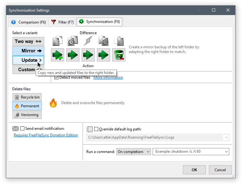 - External media and tools. You can use a USB drive to back up your files. When using your own media, it helps to have a tool to make your life easier – while a “copy/paste” operation will do the job at first, you’ll quickly realise you want the process to be smarter and faster. Windows 10 has a built-in backup feature to save file history, and Macs have Apple’s TimeMachine. If you don’t need file history, look into sync tools like FreeFileSync (available for Macs, Windows and Linux) or rsync (for advanced users only).