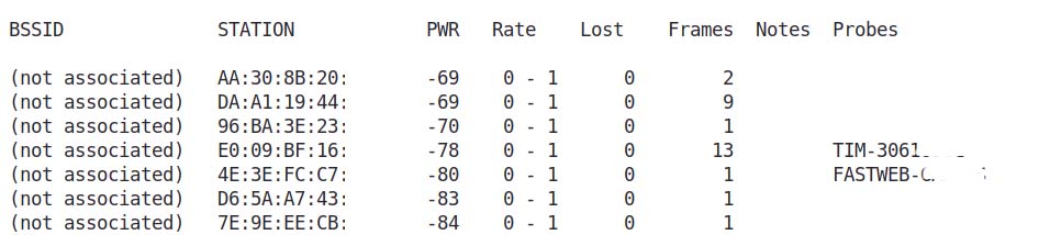 You could also catch stations trying to connect to your SSID, if it’s listed in the Probes column, but without association in the BSSID field: