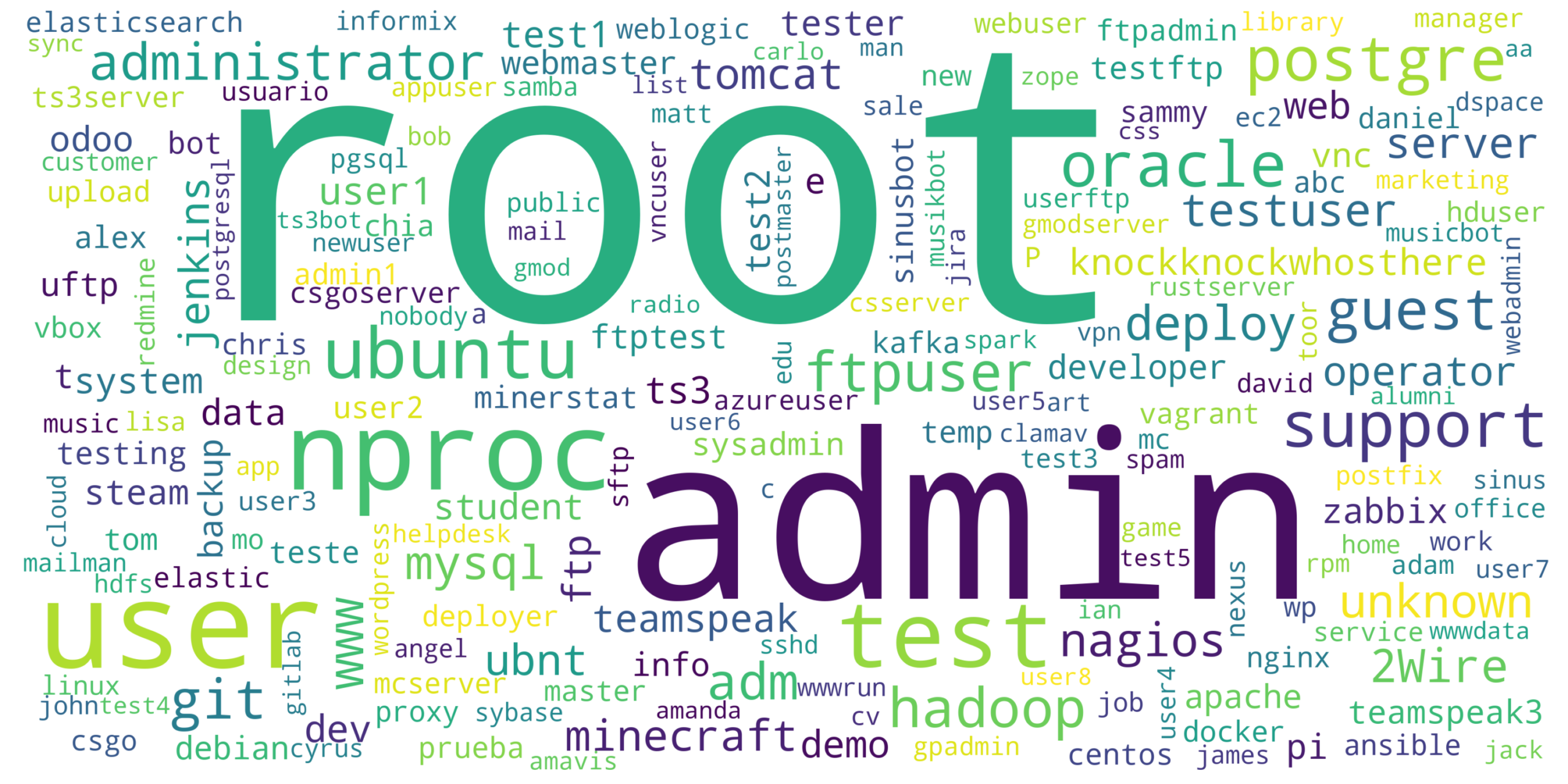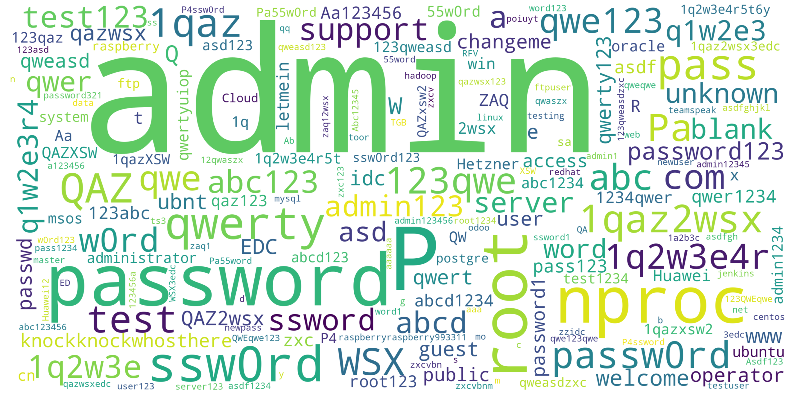 Thanks to our infrastructure, we have also recorded the most used usernames and passwords tested by the attackers. Fig. 3. shows the results. The most common user names are root and admin while the most common passwords are admin and password. There are a lot more complex combinations that attackers try to use.