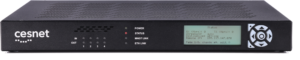 It is an electronic device for network transmission of audio and video signals with very low added latency. Transmitter and receiver together need less than 3 milliseconds to send and receive audio and video signals including compression and decompression. This is achieved by implementing device functions inside a Field Programmable Gate Array (FPGA), using low-latency codecs and proper receiver buffer management.