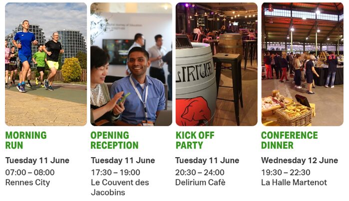 This year, the social events provide unique experiences which enable you to meet with friends, colleagues, and new faces outside of the main conference. Will you be participating in the morning 5km run? Are you looking forward to the conference dinner where you will get a taste of the best local French cuisine? We can’t wait to see you there!
