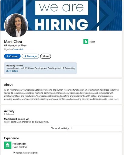 On social media, AI enables scammers to build highly convincing profiles for phony recruiters or companies. These profiles may post professional-looking content and interact with job seekers in a way that mirrors real recruitment processes, making it difficult to identify fraud at first glance. These profiles typically use real data from legitimate businesses, but careful scrutiny of their posts and connections can reveal inconsistencies.