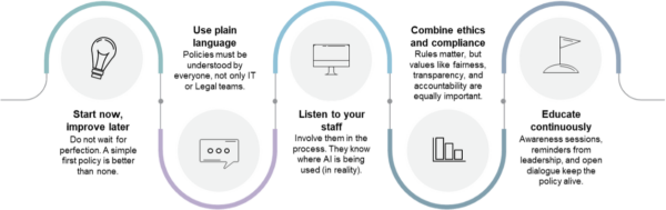 At the same time, although Europe’s first comprehensive law on Artificial Intelligence, EU AI Act, does not use the word “policy”, it sets obligations on transparency, risk management, data governance, and human oversight. In practice, these obligations cannot be met without clear internal rules and procedures.